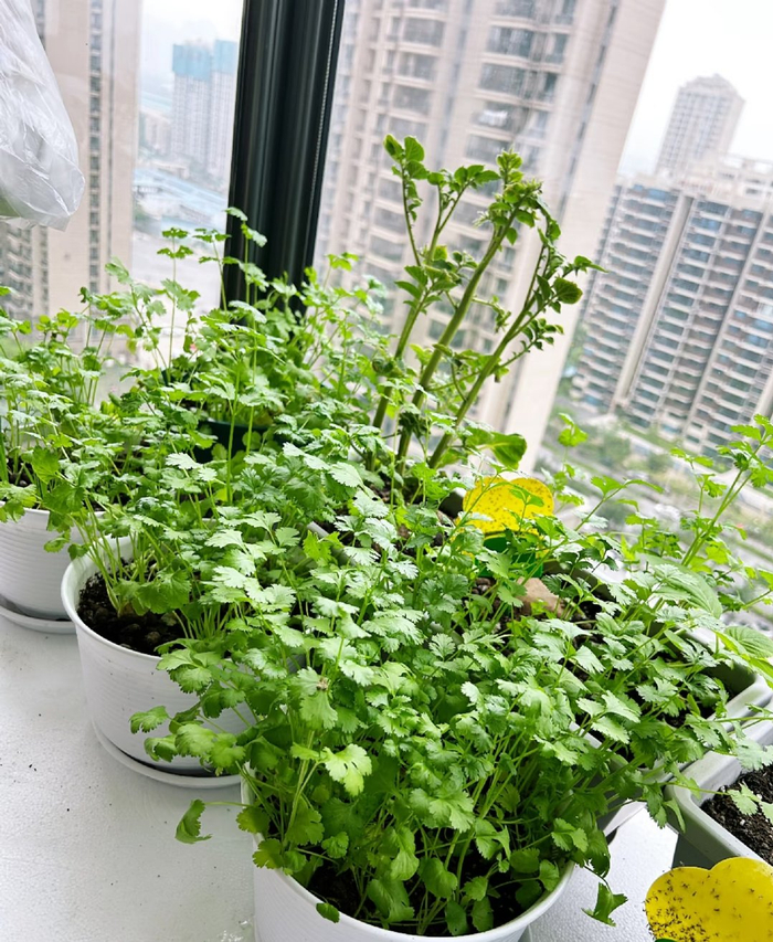 而且香菜绿油油的,放在阳台上看着就让人心情好,既能吃又能看,一举两得。